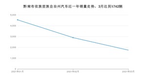 2021年3月,黔南布依族苗族自治州汽车总销量为1742辆,同比增长22.16%,环比下降39.95%。1-3月份,黔南布依族苗族自治州总销量为9186辆,同比增长56.6%。在最近1年中,黔南布依族苗族自治州销量在2021年01月达到最高,销量为4543辆。