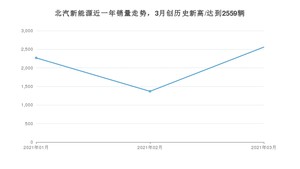 北汽新能源 3月份销量数据发布 同比增长96.09%(2021年)