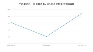 在国内市场上,广汽集团在2021年3月的销量为884辆,同比增长42.81%,环比增长322.97%。1-3月份,广汽集团累计销量为1708辆,较去年同期增长40.92%。