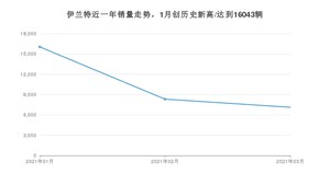 2021年3月,伊兰特销量为7128辆,环比下降14.4%。1-3月份,伊兰特销量为31498辆,在最近1年中,伊兰特销量在2021年01月达到最高,销量为16043辆。