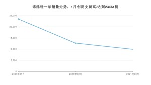 2021年3月,博越销量为9881辆,同比增长6.36%,环比下降21.96%。1-3月份,博越销量为46003辆,同比增长26.37%。在最近1年中,博越销量在2021年01月达到最高,销量为23461辆。