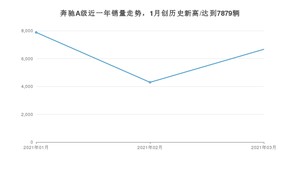 2021年3月,奔驰A级销量为6666辆,同比增长46.31%,环比增长55.2%。1-3月份,奔驰A级销量为18840辆,同比增长47.07%。在最近1年中,奔驰A级销量在2021年01月达到最高,销量为7879辆。