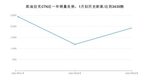 2021年3月,凯迪拉克品牌总体销量达到20603辆,其中凯迪拉克CT6销量达到1929辆,占品牌总销量的9.36%。