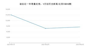 2021年3月,途岳销量为8522辆,同比增长30.67%,环比增长9.93%。1-3月份,途岳销量为31286辆,同比增长48.26%。在最近1年中,途岳销量在2021年01月达到最高,销量为15012辆。