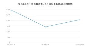2021年3月,宝马7系销量为2079辆,同比增长28.33%,环比增长45.28%。1-3月份,宝马7系销量为6446辆,同比增长36.6%。在最近1年中,宝马7系销量在2021年01月达到最高,销量为2936辆。
