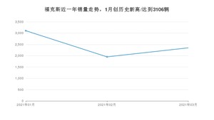 2021年3月,福克斯销量为2348辆,同比下降14.18%,环比增长20.41%。1-3月份,福克斯销量为7404辆,同比增长5.2%。在最近1年中,福克斯销量在2021年01月达到最高,销量为3106辆。
