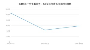2021年3月,名爵5销量为5870辆,环比增长34.36%。1-3月份,名爵5销量为20761辆,在最近1年中,名爵5销量在2021年01月达到最高,销量为10522辆。