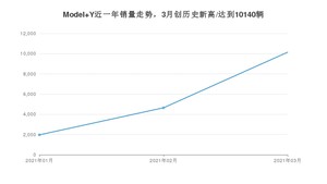 2021年3月,Model Y销量为10140辆,环比增长118.3%。1-3月份,Model Y销量为16752辆,在最近1年中,Model Y销量在2021年03月达到最高,销量为10140辆。