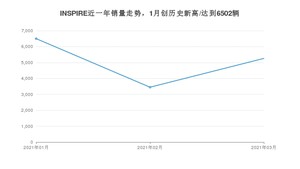 2021年3月,INSPIRE销量为5259辆,同比增长235.61%,环比增长52.39%。1-3月份,INSPIRE销量为15212辆,同比增长124.56%。在最近1年中,INSPIRE销量在2021年01月达到最高,销量为6502辆。