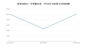 2021年3月,理想ONE销量为5058辆,同比增长242.92%,环比增长120.78%。1-3月份,理想ONE销量为12321辆,同比增长312.21%。在最近1年中,理想ONE销量在2021年03月达到最高,销量为5058辆。