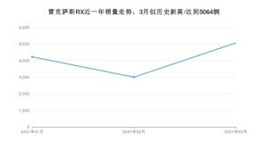 雷克萨斯RX 3月份销量数据发布 共5064台(2021年)