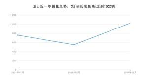 2021年3月,卫士销量为1023辆,环比增长85.66%。1-3月份,卫士销量为2334辆,同比增长233%。在最近1年中,卫士销量在2021年03月达到最高,销量为1023辆。