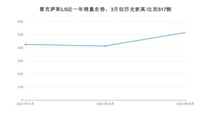 2021年3月,雷克萨斯LS销量为517辆,同比增长24.58%,环比增长24.88%。1-3月份,雷克萨斯LS销量为1356辆,同比增长71.43%。在最近1年中,雷克萨斯LS销量在2021年03月达到最高,销量为517辆。