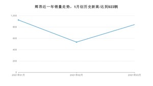 2021年3月,辉昂销量为842辆,同比增长75.05%,环比增长57.97%。1-3月份,辉昂销量为2298辆,同比增长65.2%。在最近1年中,辉昂销量在2021年01月达到最高,销量为923辆。