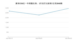 蔚来ES6 3月份销量数据发布 共2960台(2021年)