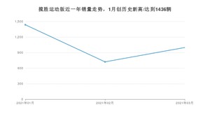 2021年3月,揽胜运动版销量为997辆,同比增长69.27%,环比增长38.28%。1-3月份,揽胜运动版销量为3154辆,同比增长83.27%。在最近1年中,揽胜运动版销量在2021年01月达到最高,销量为1436辆。