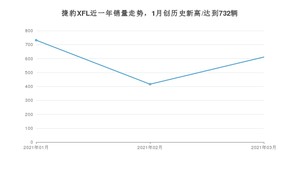 2021年3月,捷豹XFL销量为611辆,同比增长100.33%,环比增长46.88%。1-3月份,捷豹XFL销量为1759辆,同比增长108.66%。在最近1年中,捷豹XFL销量在2021年01月达到最高,销量为732辆。