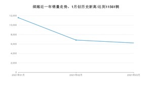 2021年3月,缤越销量为6221辆,同比增长47.07%,环比下降8.9%。1-3月份,缤越销量为24611辆,同比增长49.56%。在最近1年中,缤越销量在2021年01月达到最高,销量为11561辆。