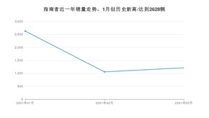 2021年3月,指南者销量为1211辆,同比下降7.77%,环比增长14.68%。1-3月份,指南者销量为4895辆,同比增长17.16%。在最近1年中,指南者销量在2021年01月达到最高,销量为2628辆。