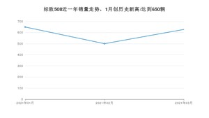 2021年3月,标致508销量为628辆,同比增长180.36%,环比增长25.6%。1-3月份,标致508销量为1778辆,同比增长194.86%。在最近1年中,标致508销量在2021年01月达到最高,销量为650辆。