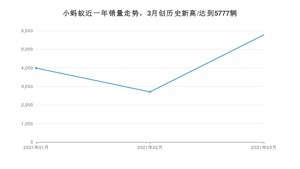 2021年3月,小蚂蚁销量为5777辆,同比增长184.44%,环比增长113.49%。1-3月份,小蚂蚁销量为12470辆,同比增长268.61%。在最近1年中,小蚂蚁销量在2021年03月达到最高,销量为5777辆。