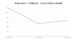 2021年3月,奔驰CLS级销量为336辆,同比下降7.18%,环比增长26.32%。1-3月份,奔驰CLS级销量为1187辆,同比增长38.67%。在最近1年中,奔驰CLS级销量在2021年01月达到最高,销量为585辆。