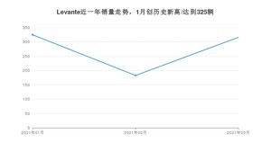 2021年3月,Levante销量为316辆,同比增长124.11%,环比增长72.68%。1-3月份,Levante销量为824辆,同比增长91.18%。在最近1年中,Levante销量在2021年01月达到最高,销量为325辆。