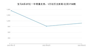 2021年3月,宝马品牌总体销量达到77957辆,其中宝马6系GT销量达到1082辆,占品牌总销量的1.39%。