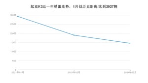 2021年3月,起亚K3销量为1453辆,同比下降40.93%,环比下降23.53%。1-3月份,起亚K3销量为6280辆,同比下降18.22%。在最近1年中,起亚K3销量在2021年01月达到最高,销量为2927辆。