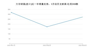 2021年3月,大切诺基(进口)销量为273辆,同比增长210.23%,环比增长57.8%。1-3月份,大切诺基(进口)销量为765辆,同比增长160.2%。在最近1年中,大切诺基(进口)销量在2021年01月达到最高,销量为319辆。