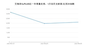 2021年3月,艾瑞泽5 PLUS销量为2115辆,环比增长7.36%。1-3月份,艾瑞泽5 PLUS销量为7241辆,在最近1年中,艾瑞泽5 PLUS销量在2021年01月达到最高,销量为3156辆。