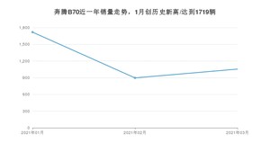 2021年3月,奔腾B70销量为1055辆,环比增长17.61%。1-3月份,奔腾B70销量为3671辆,在最近1年中,奔腾B70销量在2021年01月达到最高,销量为1719辆。