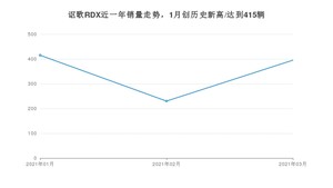 2021年3月,讴歌RDX销量为395辆,同比增长12.54%,环比增长71.74%。1-3月份,讴歌RDX销量为1040辆,同比增长14.29%。在最近1年中,讴歌RDX销量在2021年01月达到最高,销量为415辆。