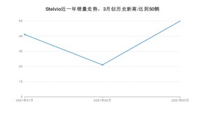 2021年3月,Stelvio销量为50辆,同比增长56.25%,环比增长138.1%。1-3月份,Stelvio销量为112辆,同比下降5.88%。在最近1年中,Stelvio销量在2021年03月达到最高,销量为50辆。