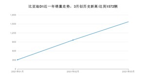 2021年3月,比亚迪D1销量为1572辆,环比增长63.24%。1-3月份,比亚迪D1销量为2842辆,在最近1年中,比亚迪D1销量在2021年03月达到最高,销量为1572辆。