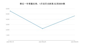 2021年3月,秦销量为4660辆,同比增长48.79%,环比增长109.34%。1-3月份,秦销量为12437辆,同比增长51.47%。在最近1年中,秦销量在2021年01月达到最高,销量为5551辆。