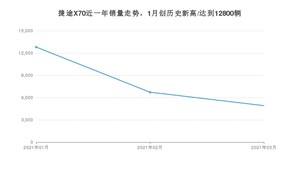 2021年3月,捷途X70销量为4915辆,同比增长114.16%,环比下降26.87%。1-3月份,捷途X70销量为24436辆,同比增长135.8%。在最近1年中,捷途X70销量在2021年01月达到最高,销量为12800辆。