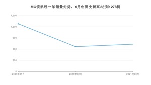 2021年3月,MG领航销量为730辆,环比增长9.77%。1-3月份,MG领航销量为2673辆,在最近1年中,MG领航销量在2021年01月达到最高,销量为1278辆。