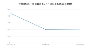 2021年3月,传祺GA6销量为390辆,同比下降41.44%,环比下降2.26%。1-3月份,传祺GA6销量为1660辆,同比下降35.66%。在最近1年中,传祺GA6销量在2021年01月达到最高,销量为871辆。