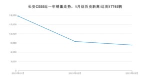 2021年3月,长安CS55销量为8319辆,同比增长55.61%,环比下降12.33%。1-3月份,长安CS55销量为35553辆,同比增长72.89%。在最近1年中,长安CS55销量在2021年01月达到最高,销量为17745辆。