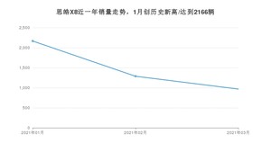 2021年3月,思皓X8销量为967辆,环比下降24.86%。1-3月份,思皓X8销量为4420辆,在最近1年中,思皓X8销量在2021年01月达到最高,销量为2166辆。