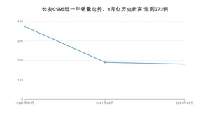 2021年3月,长安CS95销量为181辆,同比下降11.27%,环比下降4.74%。1-3月份,长安CS95销量为744辆,同比增长6.59%。在最近1年中,长安CS95销量在2021年01月达到最高,销量为373辆。