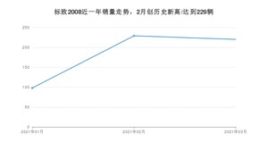 2021年3月,标致2008销量为220辆,环比下降3.93%。1-3月份,标致2008销量为547辆,同比增长2%。在最近1年中,标致2008销量在2021年02月达到最高,销量为229辆。