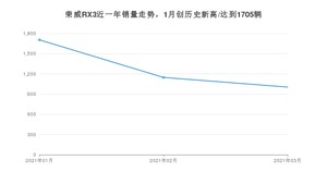 2021年3月,荣威品牌总体销量达到30730辆,其中荣威RX3销量达到1004辆,占品牌总销量的3.27%。