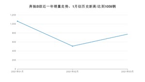 2021年3月,奔驰B级销量为772辆,同比增长20.81%,环比增长52.27%。1-3月份,奔驰B级销量为2338辆,同比增长53.01%。在最近1年中,奔驰B级销量在2021年01月达到最高,销量为1059辆。