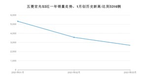 2021年3月,五菱宏光S3销量为2686辆,同比下降28.85%,环比下降24.55%。1-3月份,五菱宏光S3销量为11562辆,同比下降18.84%。在最近1年中,五菱宏光S3销量在2021年01月达到最高,销量为5316辆。