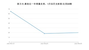 2021年3月,高尔夫·嘉旅销量为20辆,同比下降95.6%,环比增长11.11%。1-3月份,高尔夫·嘉旅销量为103辆,同比下降90.45%。在最近1年中,高尔夫·嘉旅销量在2021年01月达到最高,销量为65辆。