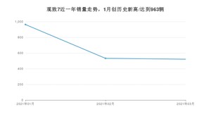 2021年3月,观致7销量为521辆,环比下降2.07%。1-3月份,观致7销量为2016辆,在最近1年中,观致7销量在2021年01月达到最高,销量为963辆。