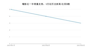 2021年3月,曜影销量为3辆,同比持平,环比下降25%。1-3月份,曜影销量为12辆,同比增长20%。在最近1年中,曜影销量在2021年01月达到最高,销量为5辆。