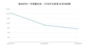 2021年3月,逸动DT销量为836辆,同比下降53.5%,环比下降22.74%。1-3月份,逸动DT销量为3770辆,同比下降26.28%。在最近1年中,逸动DT销量在2021年01月达到最高,销量为1852辆。